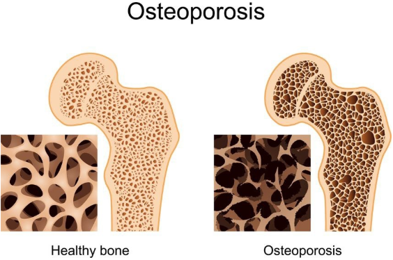 People lose bone mass or density as they age, especially women after menopause. The bones lose calcium and other minerals.